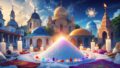 金箔が舞うクリスタルピラミッドが象徴する、オルゴナイト盛り塩の浄化力と金運アップの力。